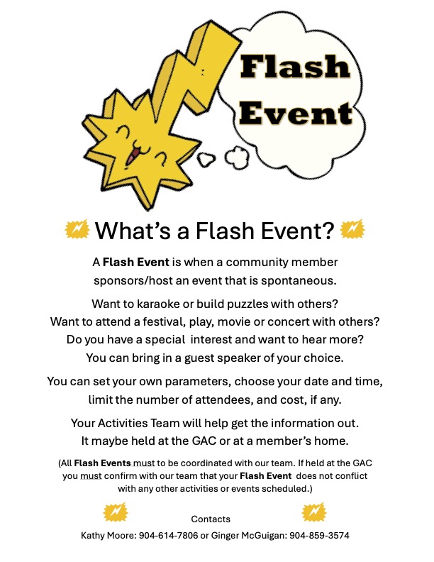 Safety & Security Meeting – meets the second Wednesday of the month at 5:30 PM at the GAC